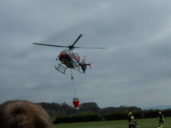 Weiter ging es auf das Übungsgelände, dort wurden diverse Einsatzszenarien vorgestellt, vom Bekämpfen eines Waldbrandes, über die Rettung von Personen aus Höhen und Tiefen, die Bekämpfung von Wohnungsbränden, Retten von Personen aus verunfallten PKWs, Einsätze von Großraumpumpen, Aufgaben des Sprengdienstes und des Wasserdienstes und der Einsatztaucher.