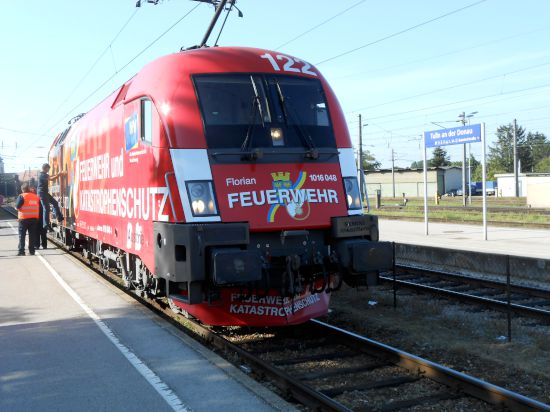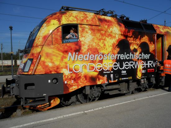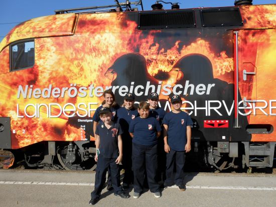 Nach einer Stärkung in der Versorgungshalle, konnte sich unsere Feuerwehrjugend beim Löschen von Kleinbränden profilieren. Zuletzt besuchten wir noch den Bahnhof Tulln um die neue Taurus Lok im Landesfeuerwehrverbanddesign zu besichtigen.
