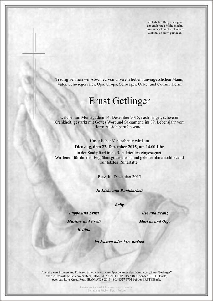 14.12.2015 Kamerad Ernst Getlinger verstorben
