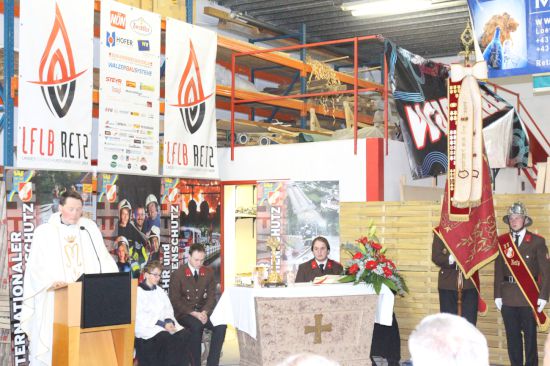 Bruder Johannes (SamFLUHM) zelebrierte am Sonntagvormittag die Heilige Festmesse. Neben zahlreichen Gästen konnte Kommandant HBI Markus Leidenfrost auch einige Ehrengäste begrüßen. BR Ing. Christian Lehninger, Unterabschnitts-Kdt und Kdt-Stv der Feuerwehr Kleinhöflein, FJUR, Ing. Dr. Erhart Neubauer, Kommandant der FF Kleinriedenthal OBI Andreas Elmer, Bgm Helmut Koch, Vize-Bgm Alfred Kliegl, Stadtamtsdirektor Andreas Sedlmayer sowie zahlreiche Stadt- und Gemeinderäte. Musikalisch wurde die Heilige Messe von dem Windmühlenecho umrahmt.